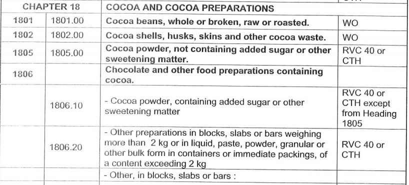 4 For Headings 31.05, the applied criterion is RVC 40%, unless otherwise mutually agreed by the Parties.
